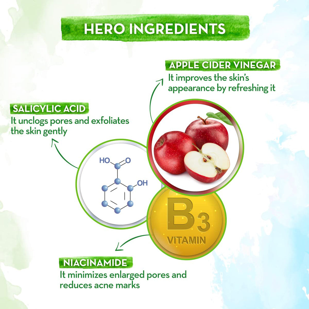 Break free from breakouts! Wash off the day’s grime & grease with Mamaearth Oil-Free Face Wash. Crafted with the refreshing goodness of Apple Cider Vinegar and the power of Salicylic Acid, this face wash combats pesky pimples by cleansing the skin deeply, unclogging pores & healing active acne.