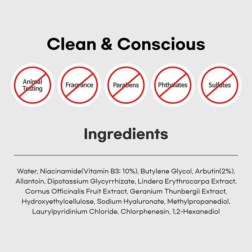 CONCENTRATED FACE SERUM FOR GREAT RESULTS Formulated with 10% Niacinamide and 2% Arbutin, this niacinamide face serum designed to reduce the appearance of dark spots, acne scars, skin discoloration, and acne marks for more even skin tone and visibly brighter complexion