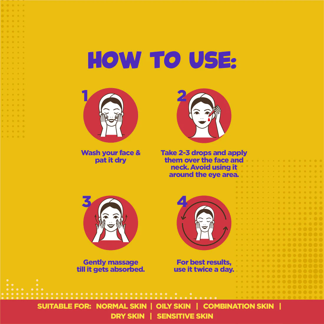Say bye-bye to pimples with tea tree extracts and salicylic acid. This lightweight, non-sticky serum hydrates your skin and fights acne and breakouts. Its brilliant small-molecule formula enables deep penetration of ingredients, giving fast relief from acne and pimples. Paired with Niacinamide and Thanaka Wood Powder, it fights dark spots, leaving you with healthy and glowing skin every day.